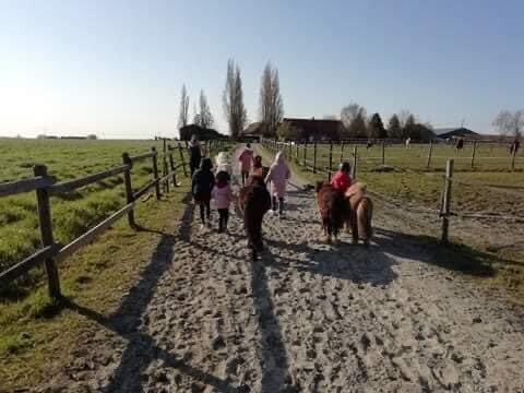 Ze krijgen gedurende deze 3 uurtjes kennismaking met onze shetties en grotere pony's aan de hand van spelletjes, verzorging, ritjes,...